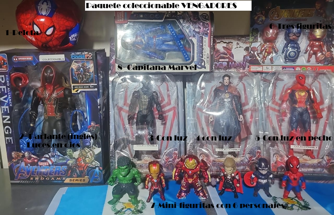 Figuras principales: Iron Man, Hulk, Capitán Marvel, Thor, Capitán América y otros