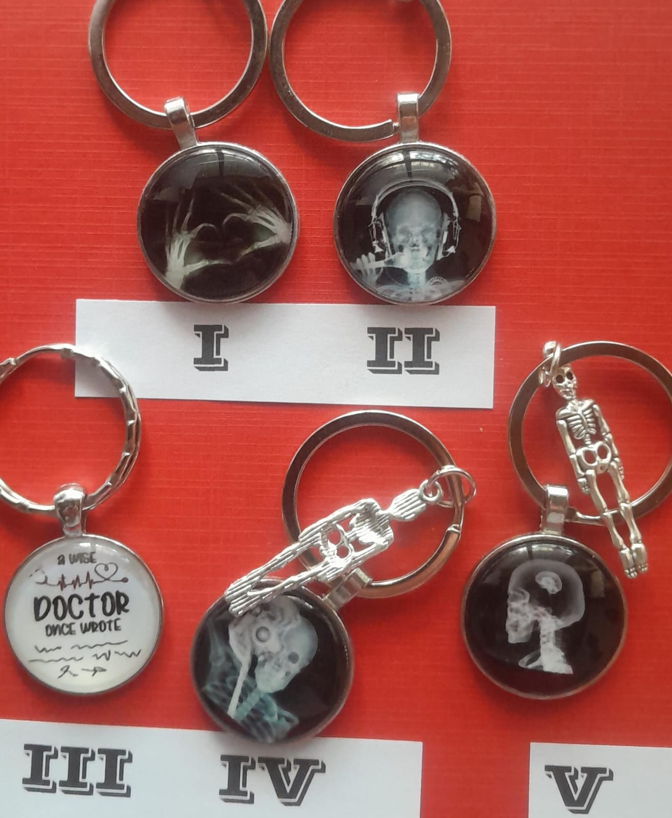Presentamos nuestra colección exclusiva de llaveros anatómicos con diseños únicos de radiografías, esqueletos y frases para amantes de la medicina, el misterio y lo alternativo.