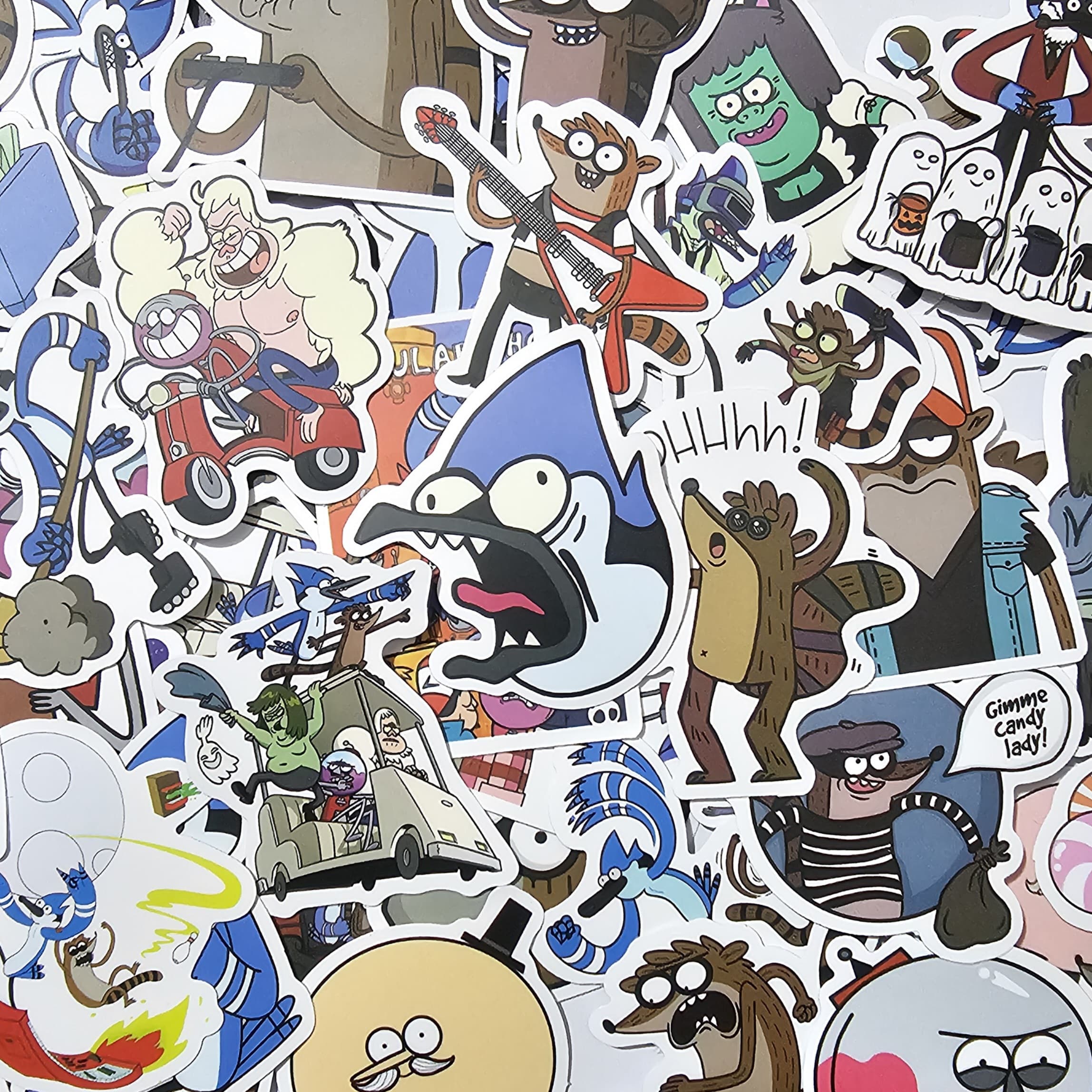 Ya en Guatemala: Stickers un show mas, Mordecai, Rigby, Musculoso, Papaleta, Skips, Thomas, Eilin, tu programa favorito de la tele. Precio por docena